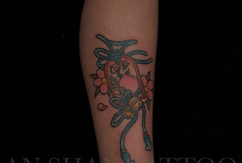 御守纹身纹身图片_腿部Old School纹身图案