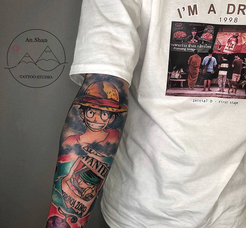 海贼王路飞包小臂纹身图片_手臂New School海贼王纹身图案