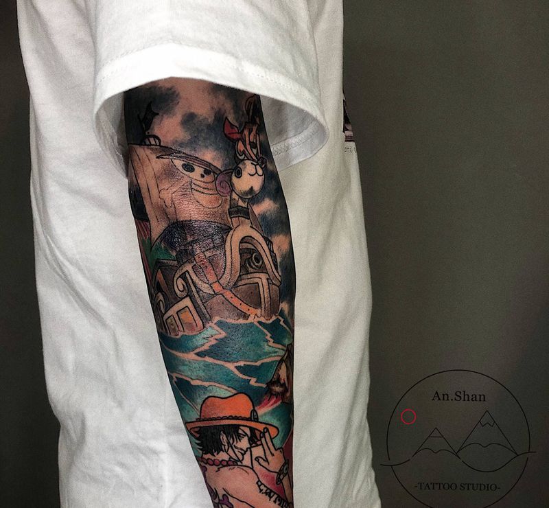 海贼王路飞包小臂纹身图片_手臂New School海贼王纹身图案
