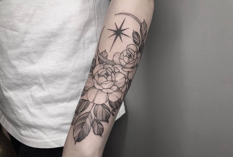 素花纹身图片_手臂点刺纹身图案