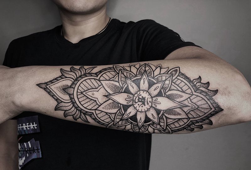 当前位置: 首页 >安徽省马鞍山市纹身店-安山刺青処纹身图案>梵花纹身图片_手臂点刺几何纹身图案
