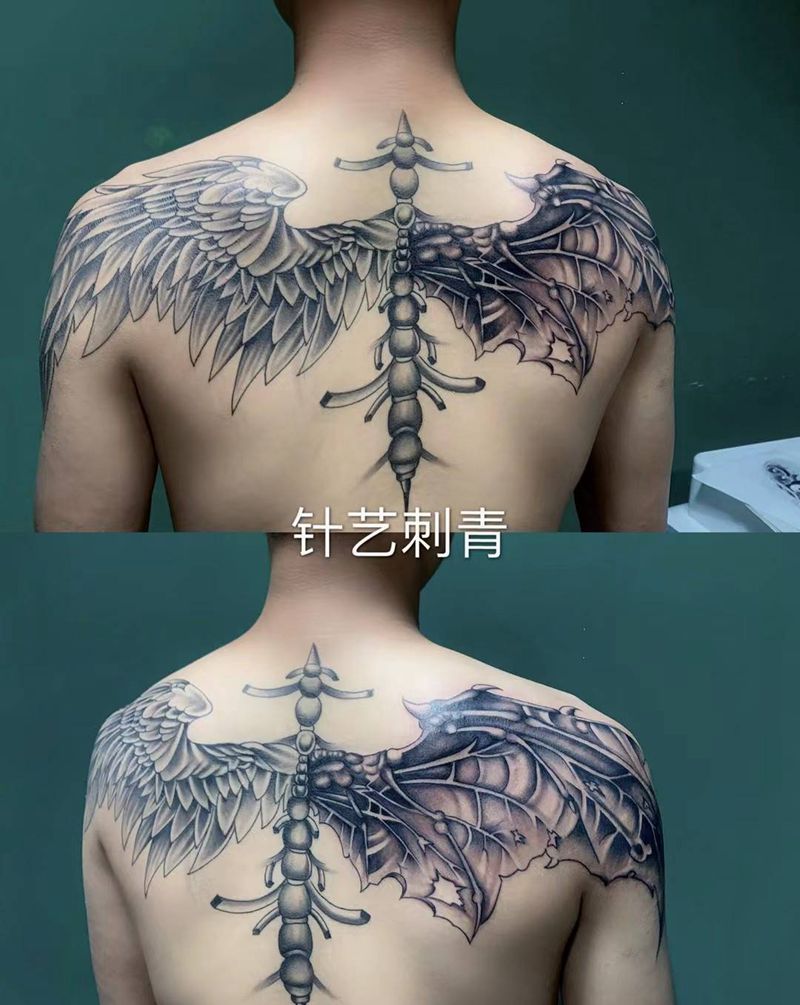 天使恶魔 翅膀纹身图片_背部纹身图案