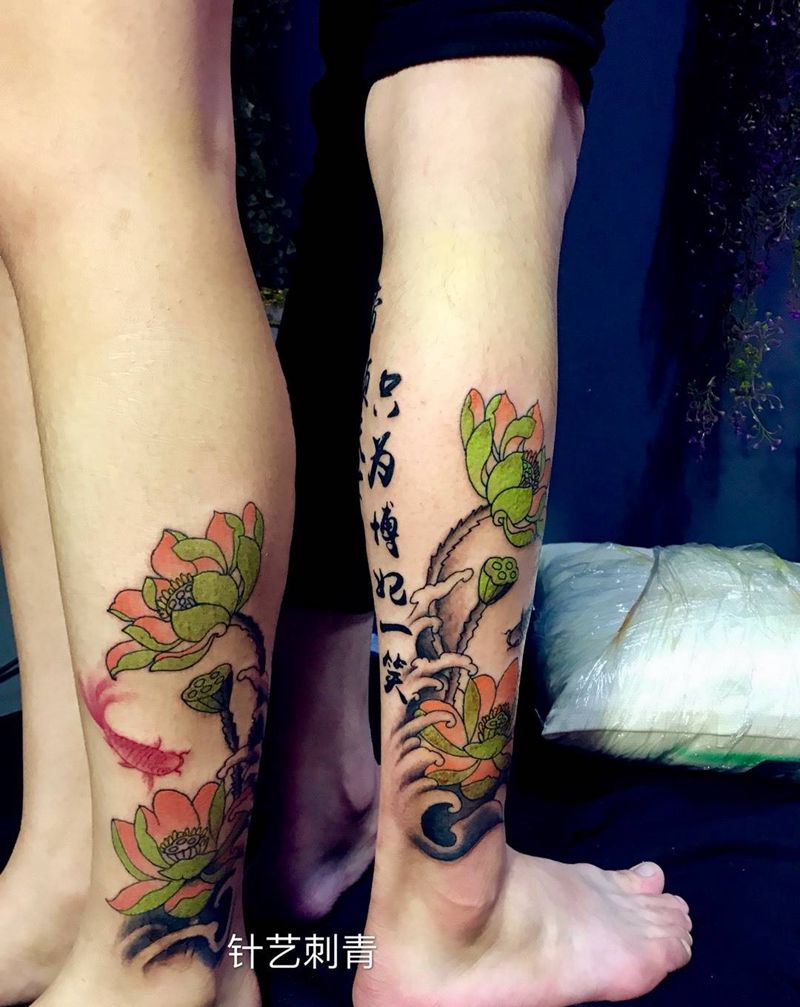 • T网红王老大花腿龙纹身图片_腿部新传统纹身图案