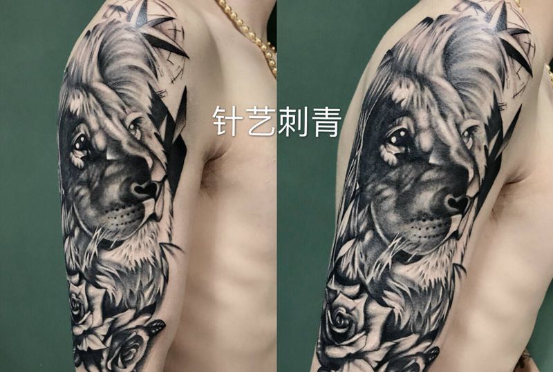 欧美狮子遮盖纹身图片_手臂纹身图案
