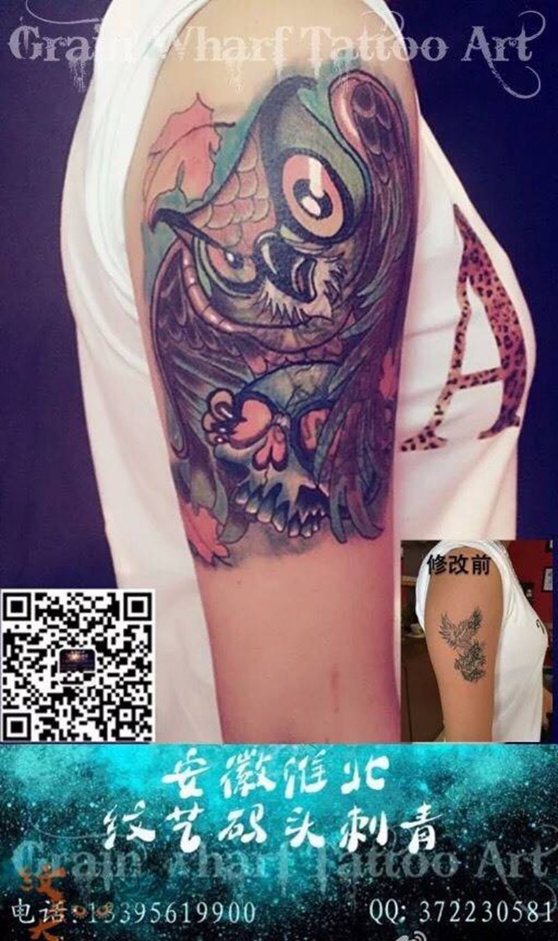 当前位置: 首页 >安徽省淮北市纹身店-淮北纹身店纹艺码头刺青Tattoo纹身图案>猫头鹰遮盖纹身图片