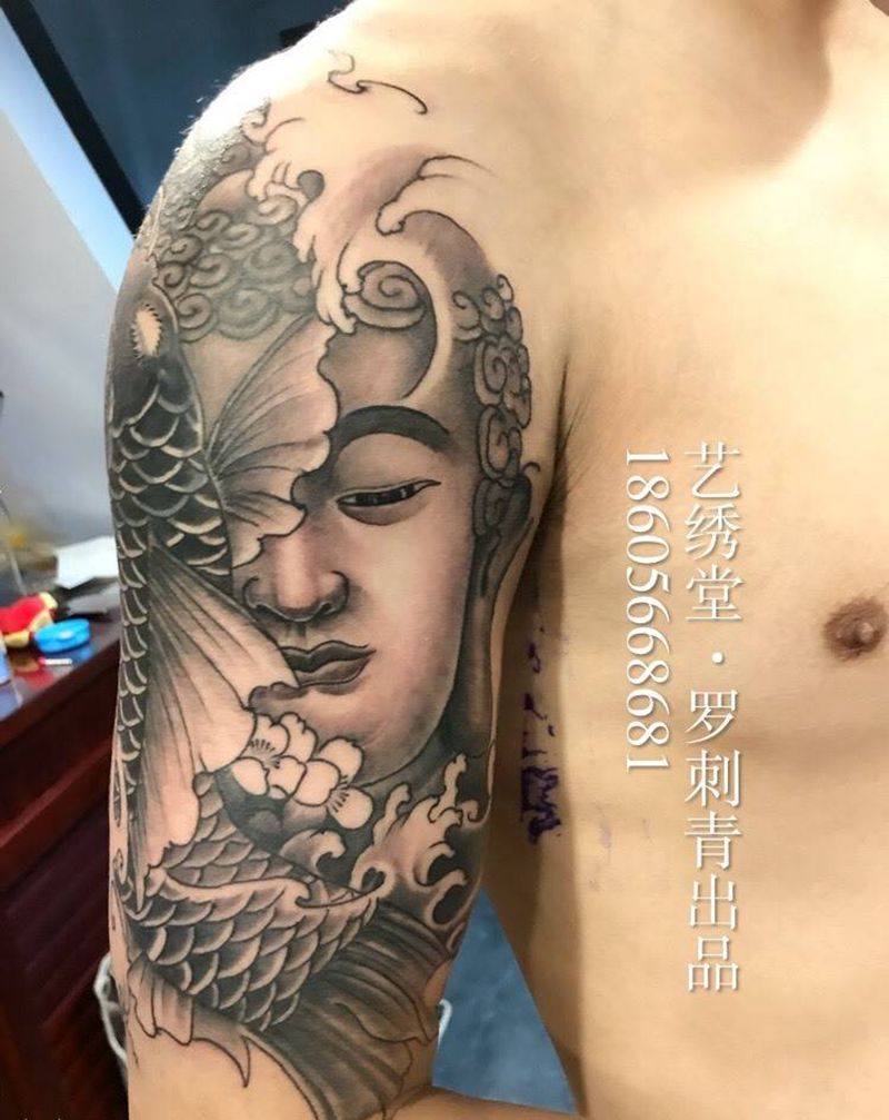 当前位置: 首页 >安徽省池州市纹身店-罗刺青纹身图案>佛和鱼纹身图片