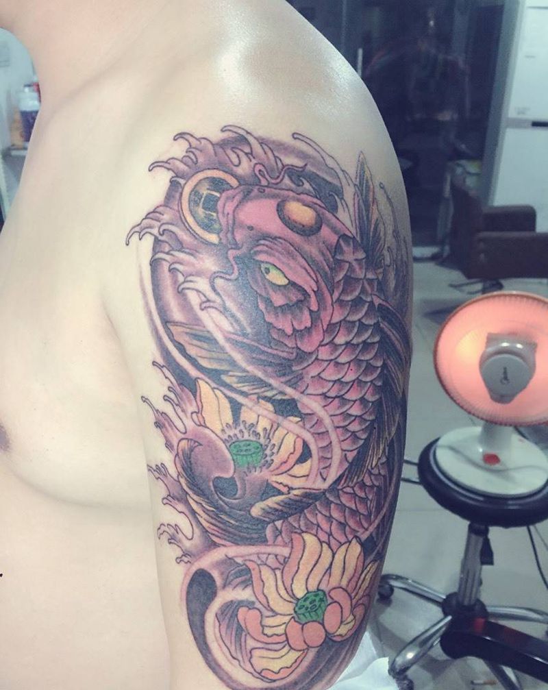 当前位置: 首页 >安徽省池州市纹身店-罗刺青纹身图案>莲花鲤鱼纹身图片