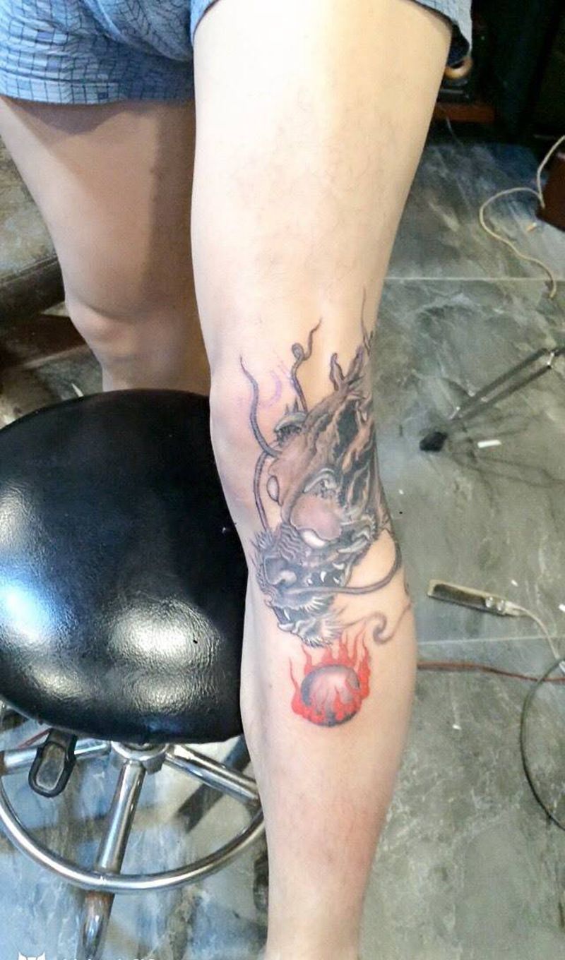 • T网红王老大花腿龙纹身图片_腿部新传统纹身图案