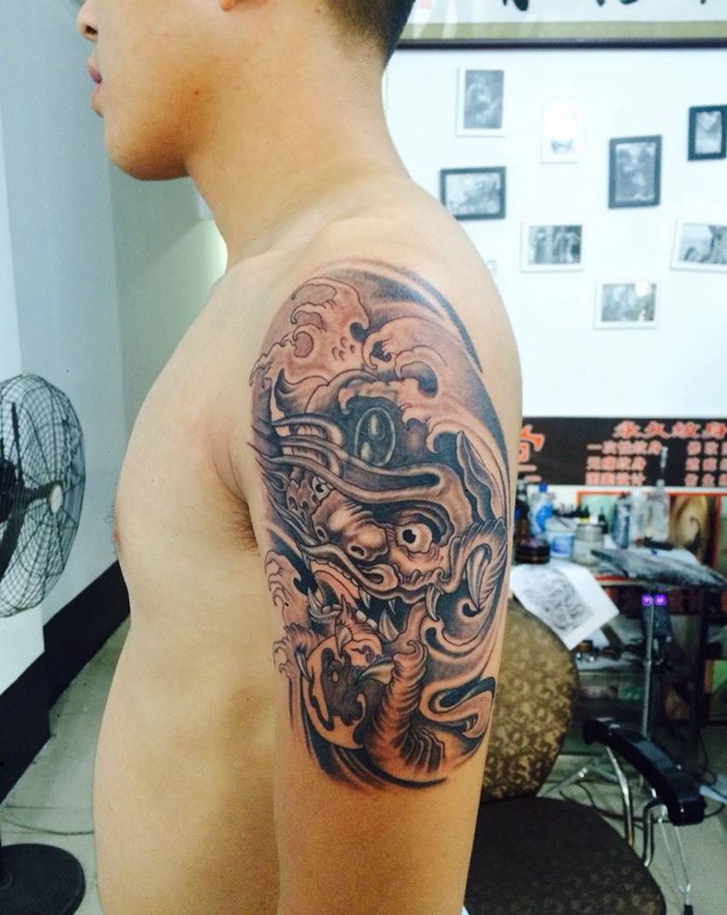 • 纹身吧推荐的披肩图腾半胛纹身图案作品展示