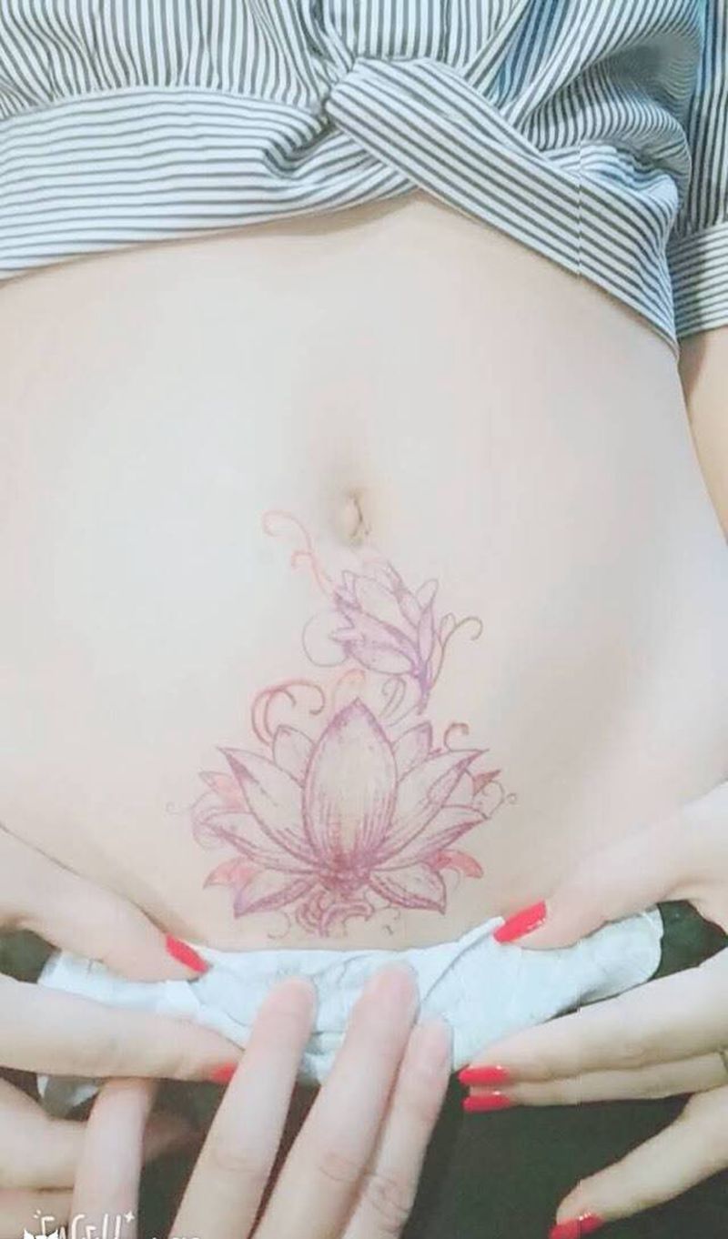 • 时尚性感的腹部莲花纹身图案