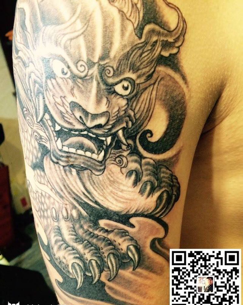 当前位置: 首页 >安徽省池州市纹身店-罗刺青纹身图案>唐狮纹身图片