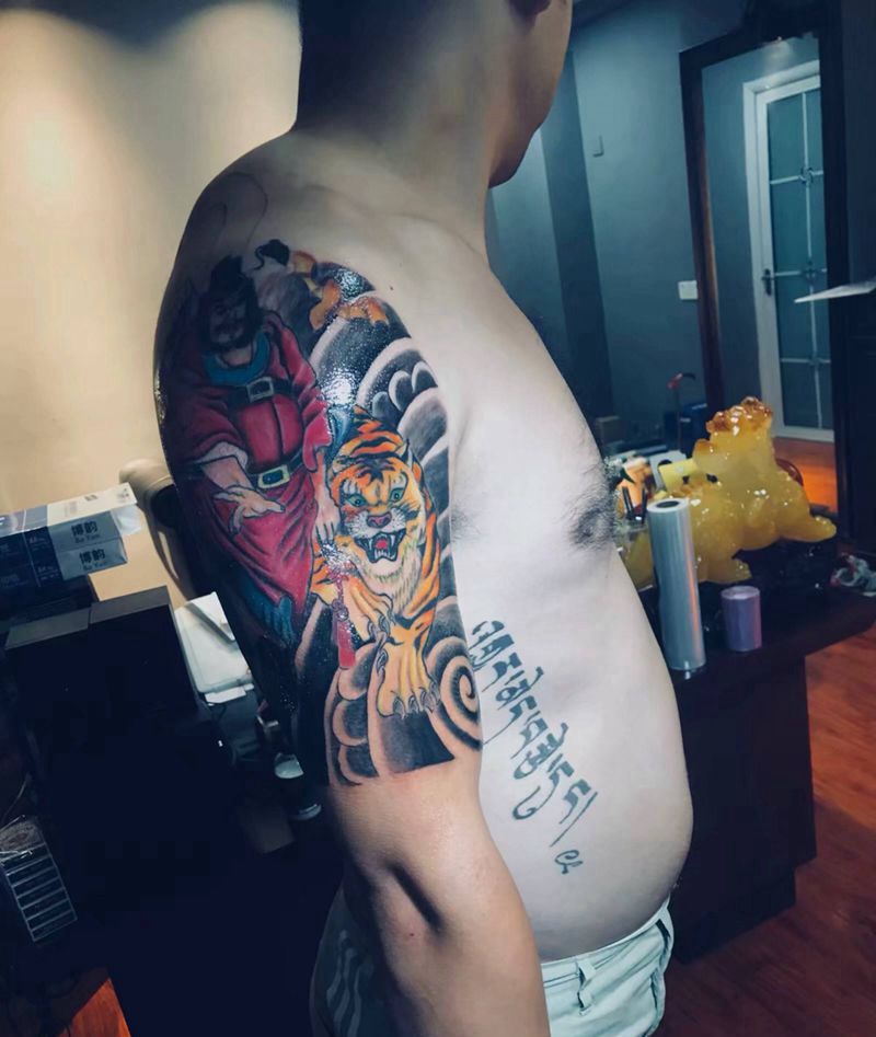 当前位置: 首页 >安徽省宿州市纹身店-The 7s Tattoo纹身图案>钟馗伏虎纹身图片_肩部手臂新传统大臂钟馗老虎纹身图案