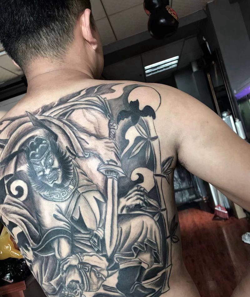 黑灰满背纹身图案