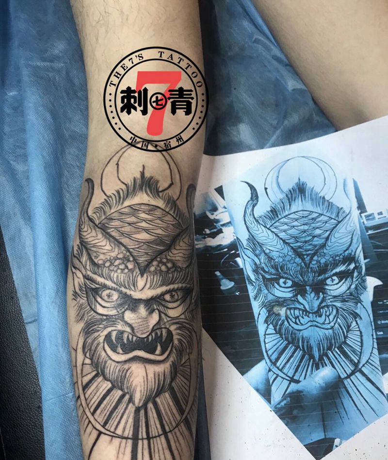 当前位置: 首页 >安徽省宿州市纹身店-The 7s Tattoo纹身图案>恶魔纹身图片_腿部手臂New School点刺纹身图案