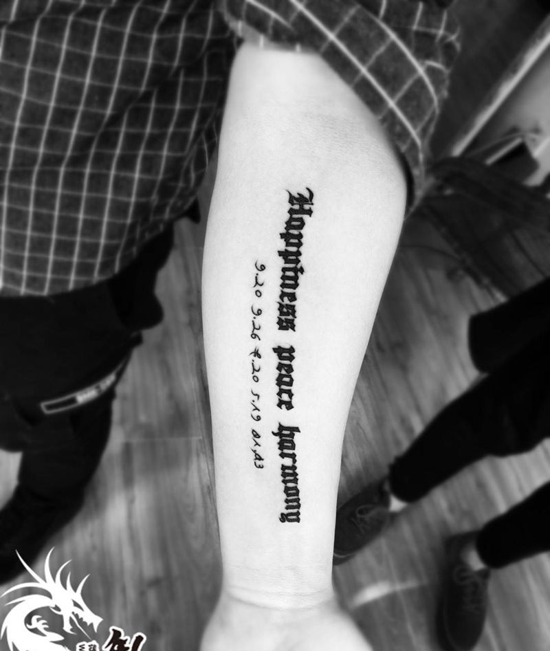 • T家庭图,一家四口生日纪念!纹身图片_手臂纹身图案