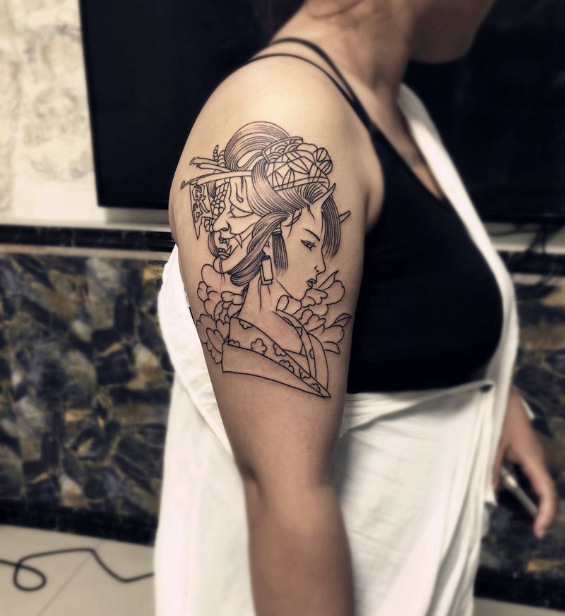 • 纹身吧推荐的披肩图腾半胛纹身图案作品展示