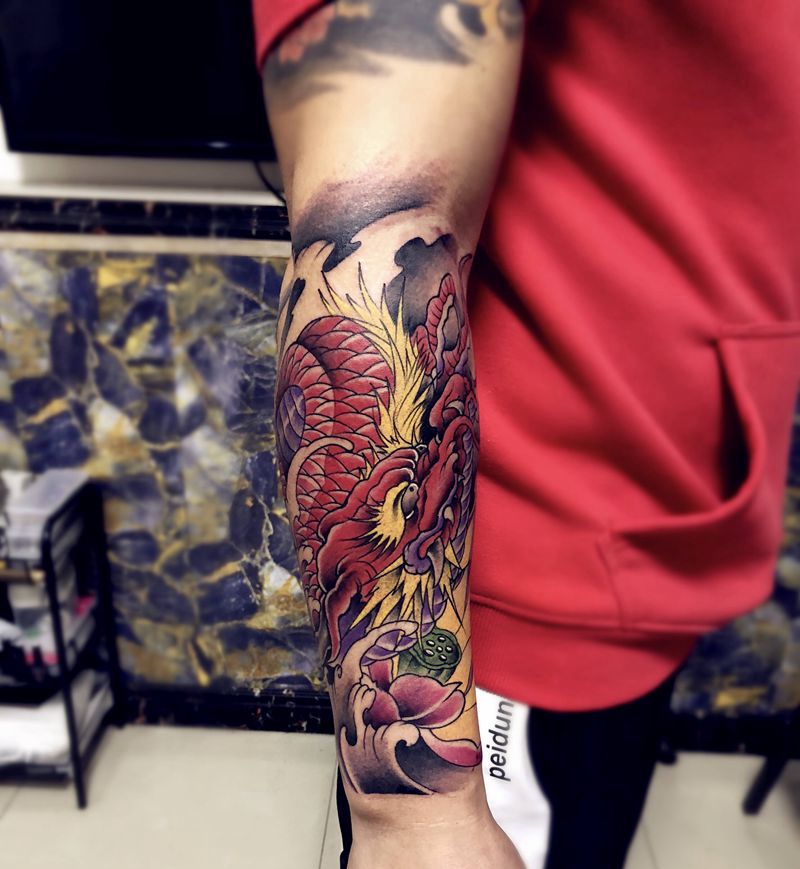 一组15张莲花纹身手