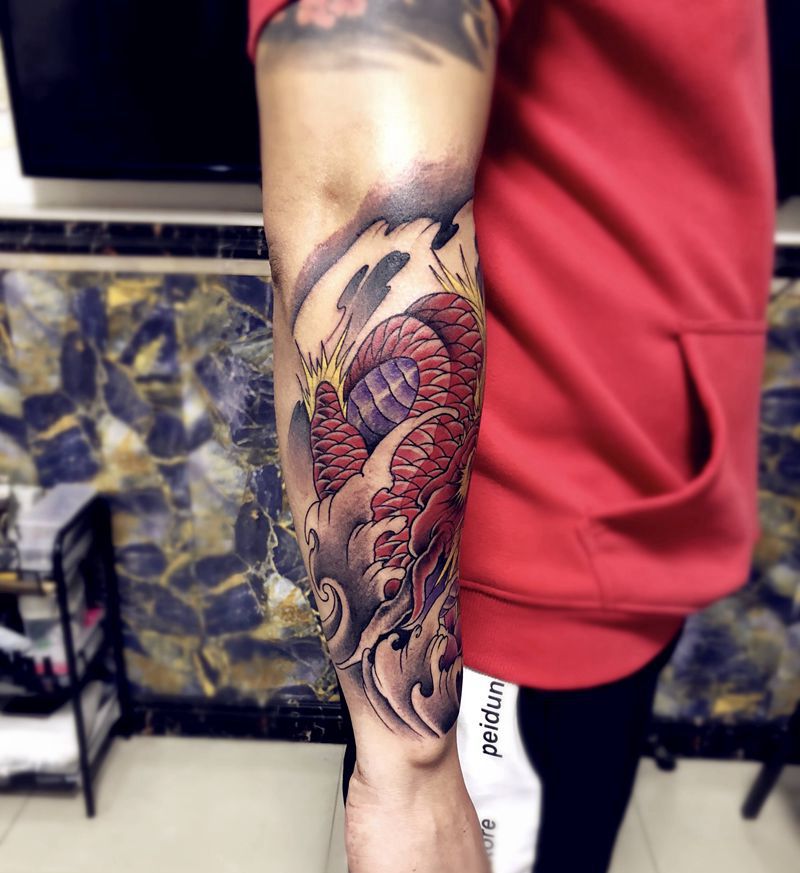 当前位置: 首页 >安徽省亳州市纹身店-鬼谷刺青工作室纹身图案>小臂龙纹身图片_新传统纹身图案