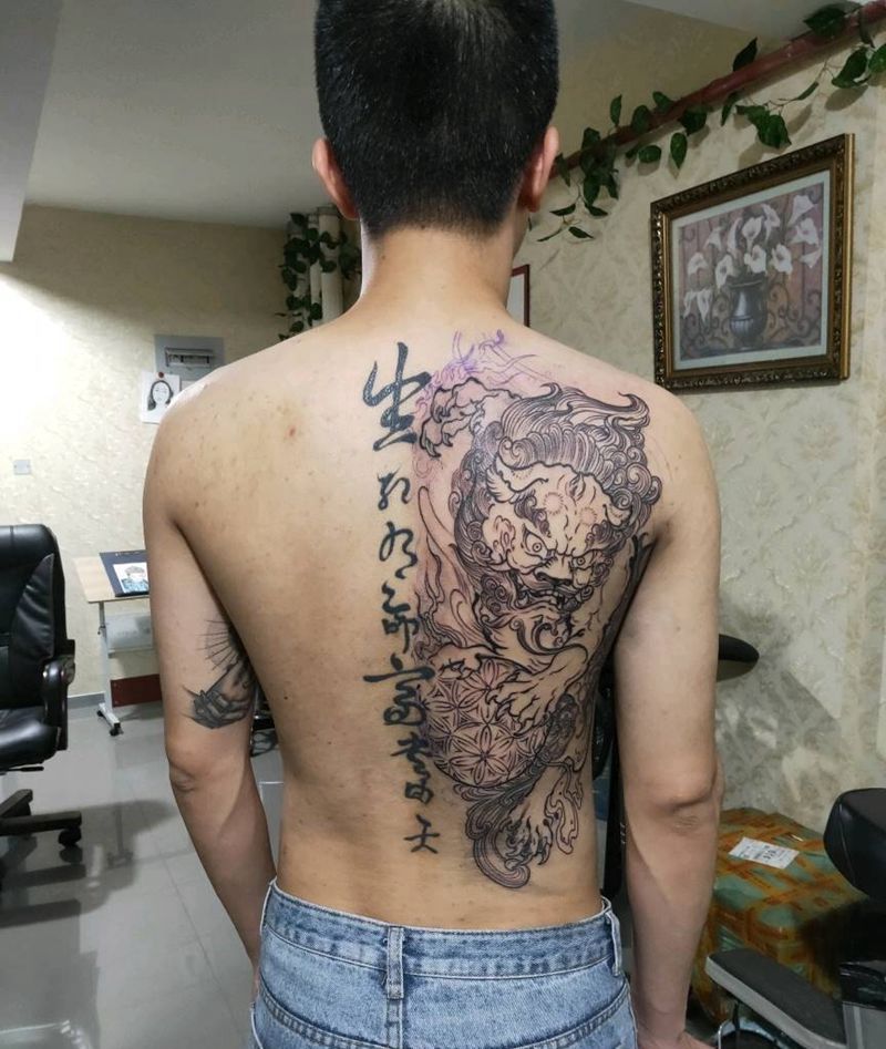 唐狮纹身图片_背部老传统纹身图案