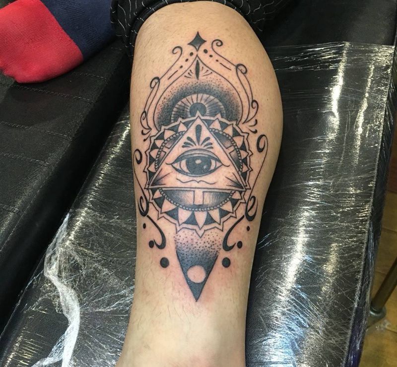 • T包小腿吹火男+阿多福纹身图片_腿部老传统新传统吹火男阿