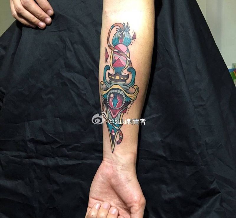 当前位置: 首页 >福建省厦门市纹身店-厦门铭刺青纹身图案>浓彩欧美匕首纹身图片