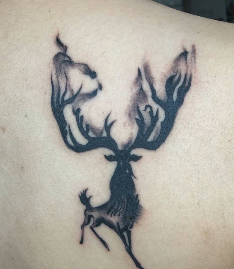 泼墨麋鹿纹身图片