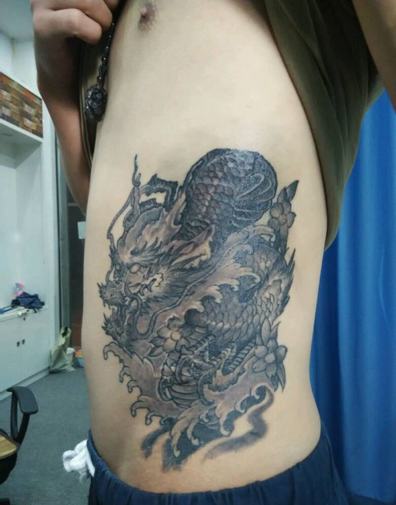 • T网红王老大花腿龙纹身图片_腿部新传统纹身图案
