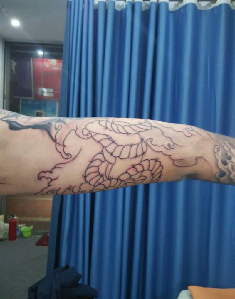 • T网红王老大花腿龙纹身图片_腿部新传统纹身图案