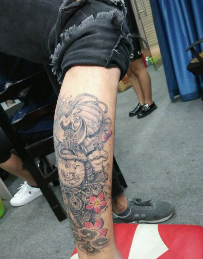 • T网红王老大花腿龙纹身图片_腿部新传统纹身图案