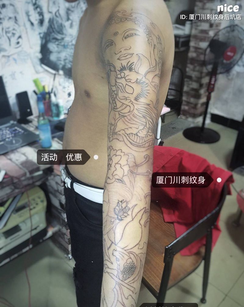当前位置: 首页 >福建省厦门市纹身店-川刺纹身纹身图案>大花臂,线条耗时三个小时,活动特价,需要联系纹身图片