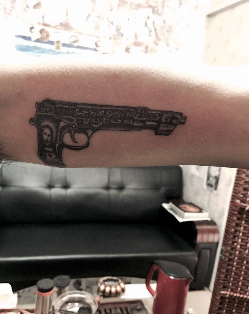 当前位置: 首页 >福建省厦门市纹身店-川刺纹身纹身图案>用枪说话纹身图片