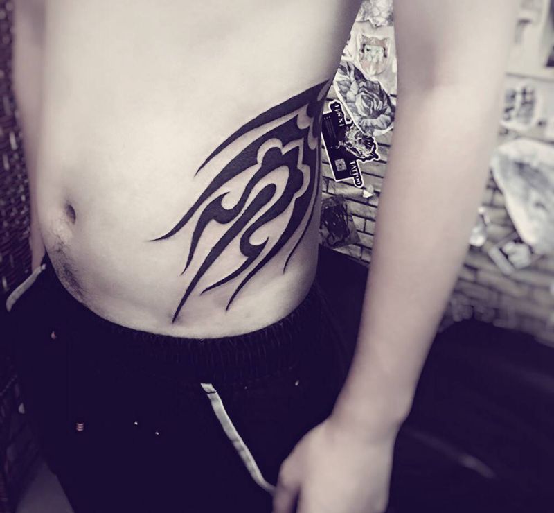 • T关于私处得爱!纹身图片_成品腹部清新字符图腾纹身图案