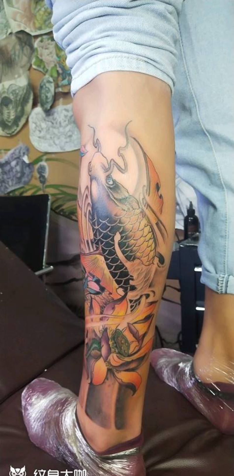 当前位置: 首页 >福建省厦门市纹身店-精彩文生纹身图案>鲤鱼纹身图片_腿部纹身图案
