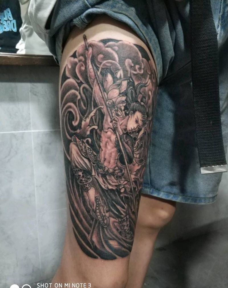 当前位置: 首页 >福建省莆田市纹身店-莆田纹艺刺青纹身图案>哪吒修改作品纹身图片_腿部新传统纹身图案