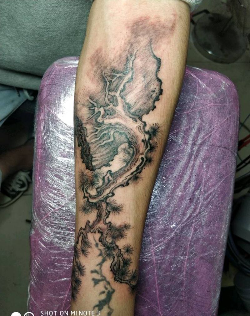 当前位置: 首页 >福建省莆田市纹身店-莆田纹艺刺青纹身图案>鹤长松颠,独宿万岩雨。龙湫在纹身图片_手臂水墨新传统纹身图案