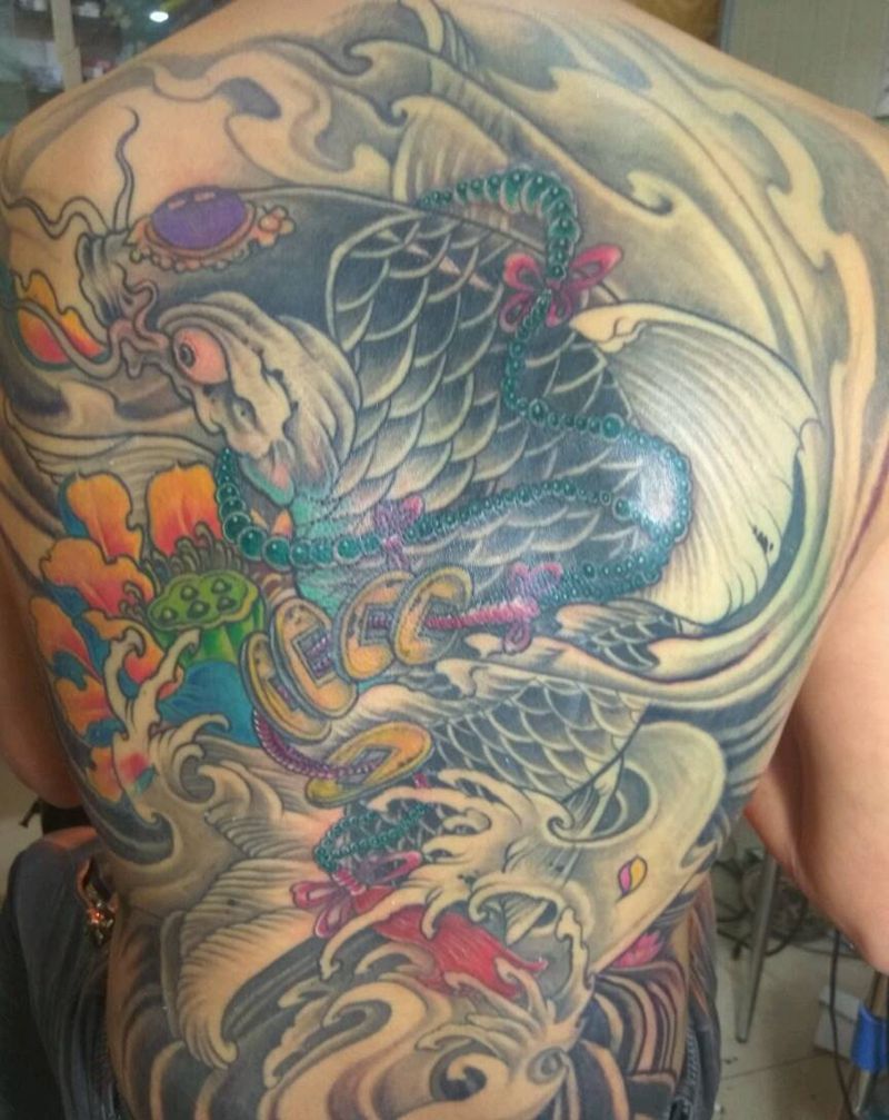 当前位置: 首页 >福建省莆田市纹身店-莆田纹艺刺青纹身图案>本店满背锦鲤作品纹身图片_背部传统动物纹身图案