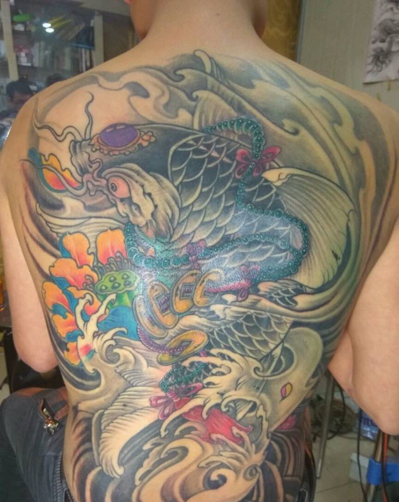 本店满背锦鲤作品纹身图片_背部传统动物纹身图案