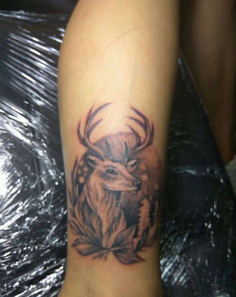 当前位置: 首页 >福建省莆田市纹身店-莆田纹艺刺青纹身图案>鹿头、纹身图片_手臂脚部欧美清新动物成品纹身图案