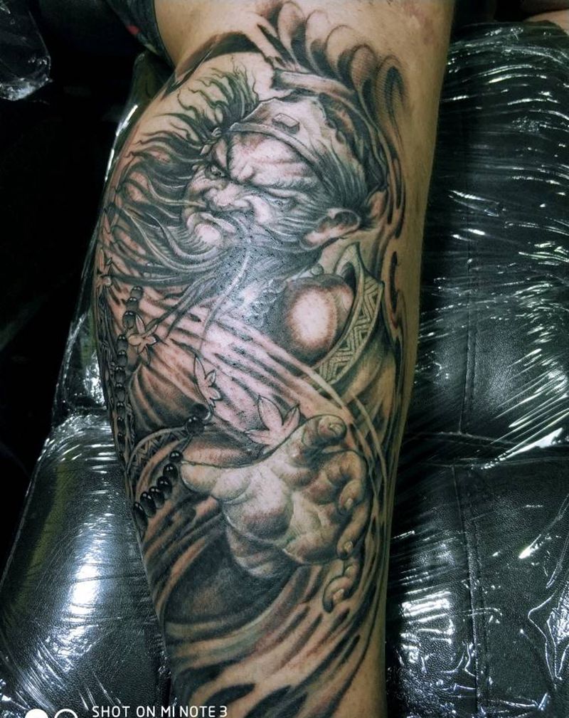当前位置: 首页 >福建省莆田市纹身店-莆田纹艺刺青纹身图案>新传统判官纹身图片_腿部手臂新传统纹身图案