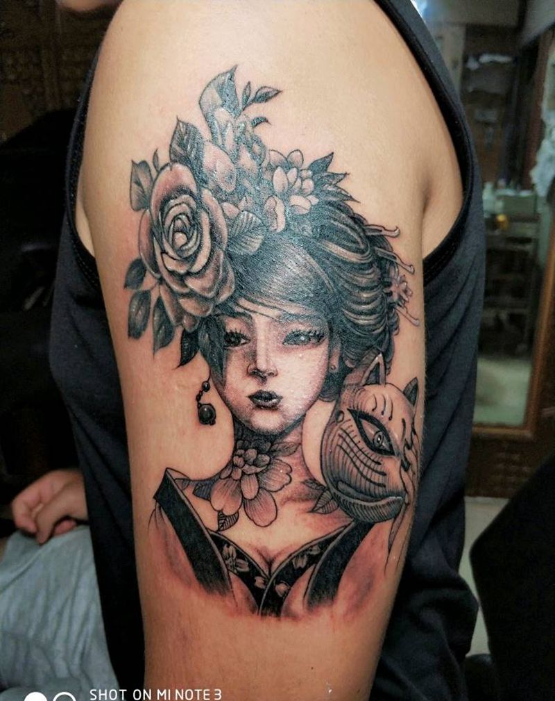 当前位置: 首页 >福建省莆田市纹身店-莆田纹艺刺青纹身图案>艺妓添加设计纹身图片_手臂新传统纹身图案