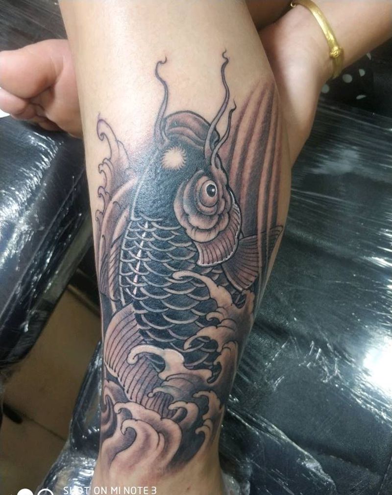 • T网红王老大花腿龙纹身图片_腿部新传统纹身图案