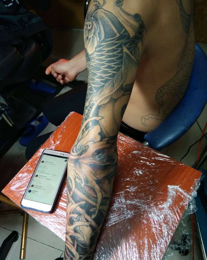 当前位置: 首页 >福建省莆田市纹身店-莆田纹艺刺青纹身图案>金蟾锦鲤花臂纹身图片_动物传统手臂成品纹身图案