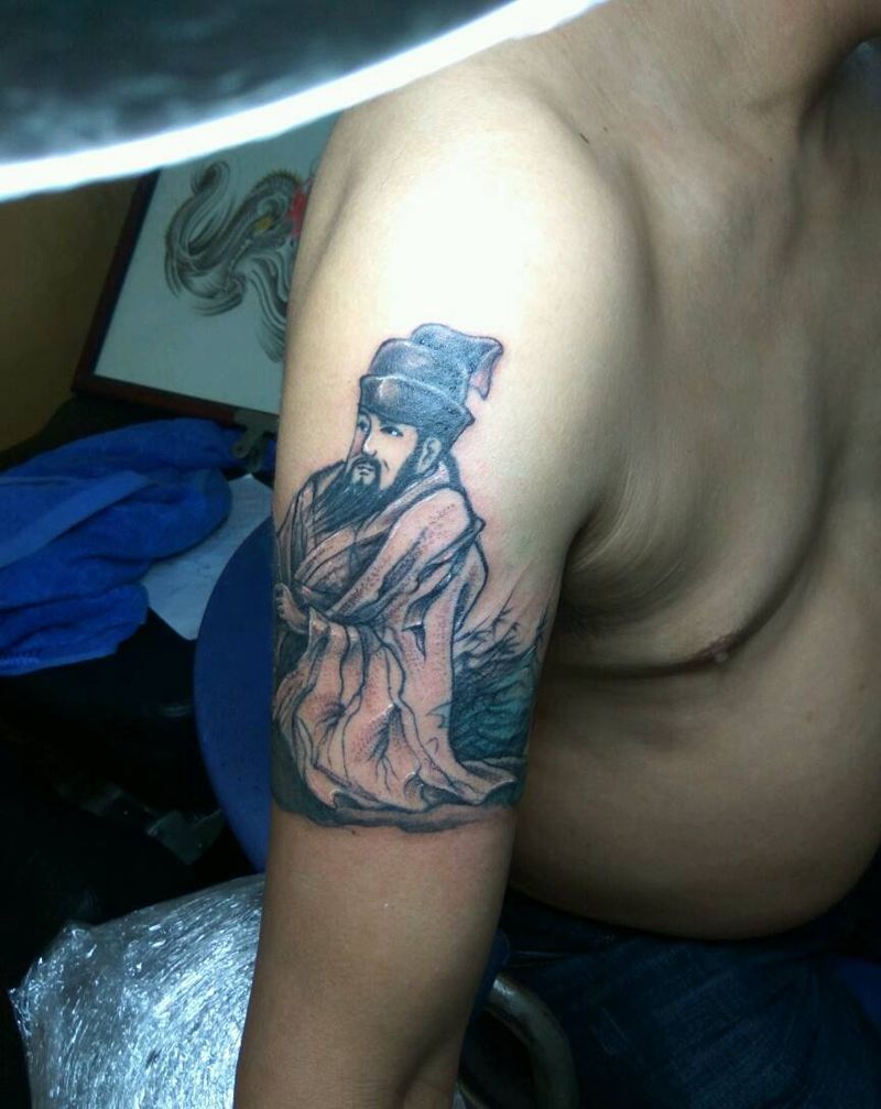 当前位置: 首页 >福建省莆田市纹身店-莆田纹艺刺青纹身图案>修改作品纹身图片_手臂传统人物成品纹身图案