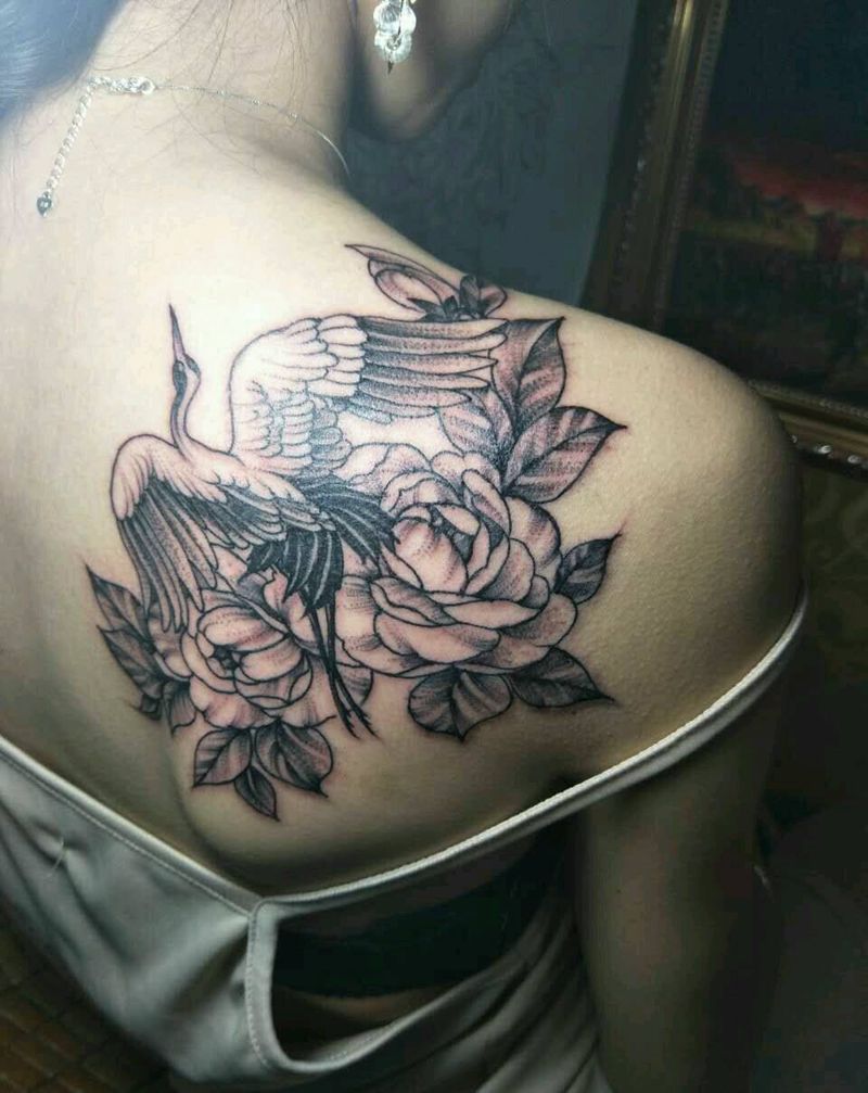 鹤花纹身图片_肩部清新静物成品纹身图案
