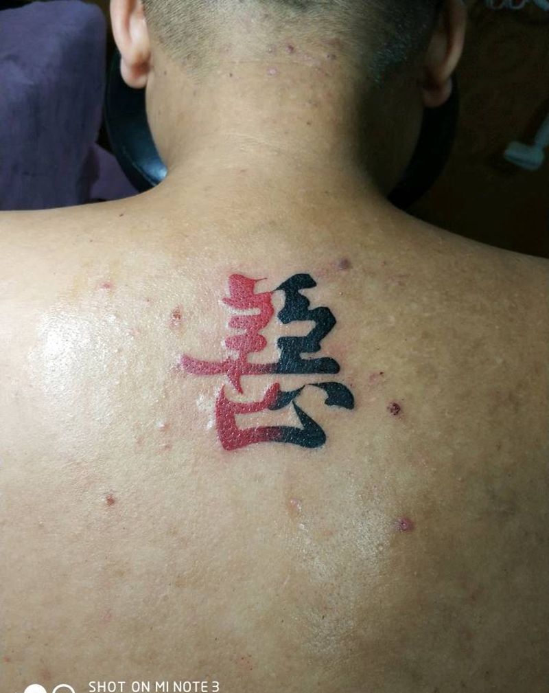 当前位置: 首页 >福建省莆田市纹身店-莆田纹艺刺青纹身图案>善恶纹身图片_背部国画字符成品纹身图案
