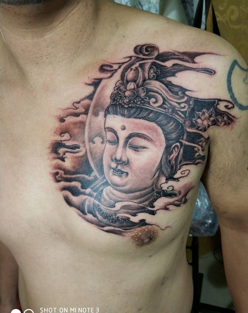 胸口菩萨纹身图片_胸部传统鬼神成品纹身图案