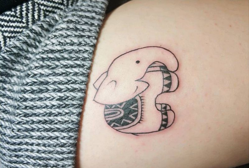 当前位置: 首页 >福建省莆田市纹身店-莆田纹艺刺青纹身图案>小象纹身图片_腿部清新动物成品纹身图案