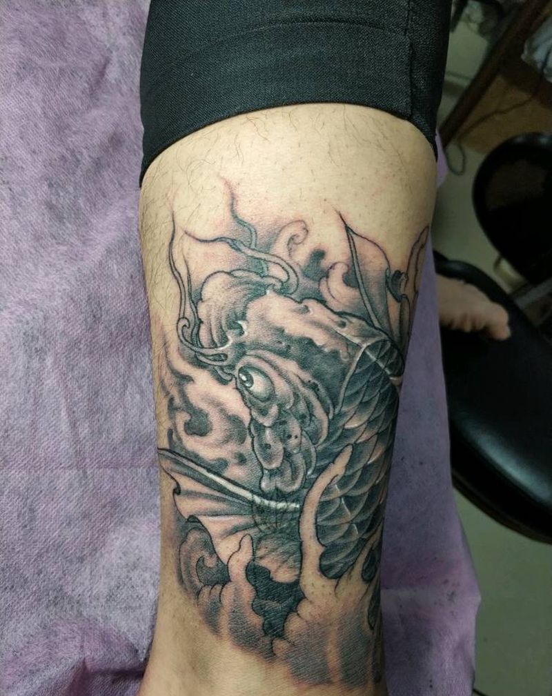 • T网红王老大花腿龙纹身图片_腿部新传统纹身图案