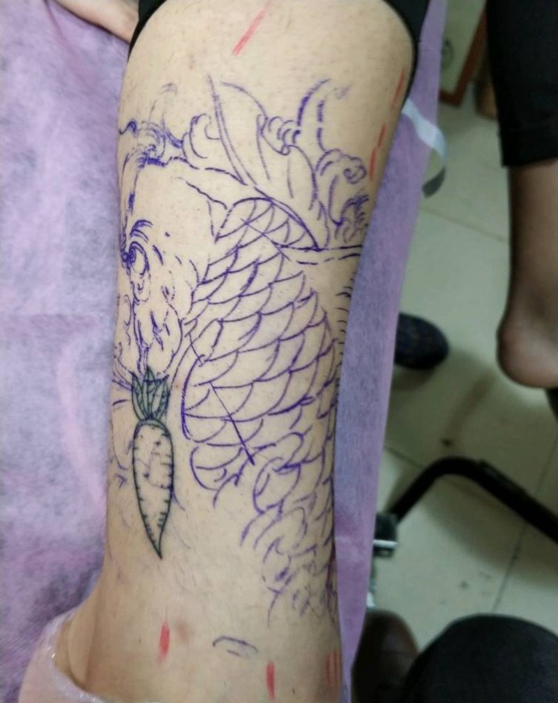 • T网红王老大花腿龙纹身图片_腿部新传统纹身图案
