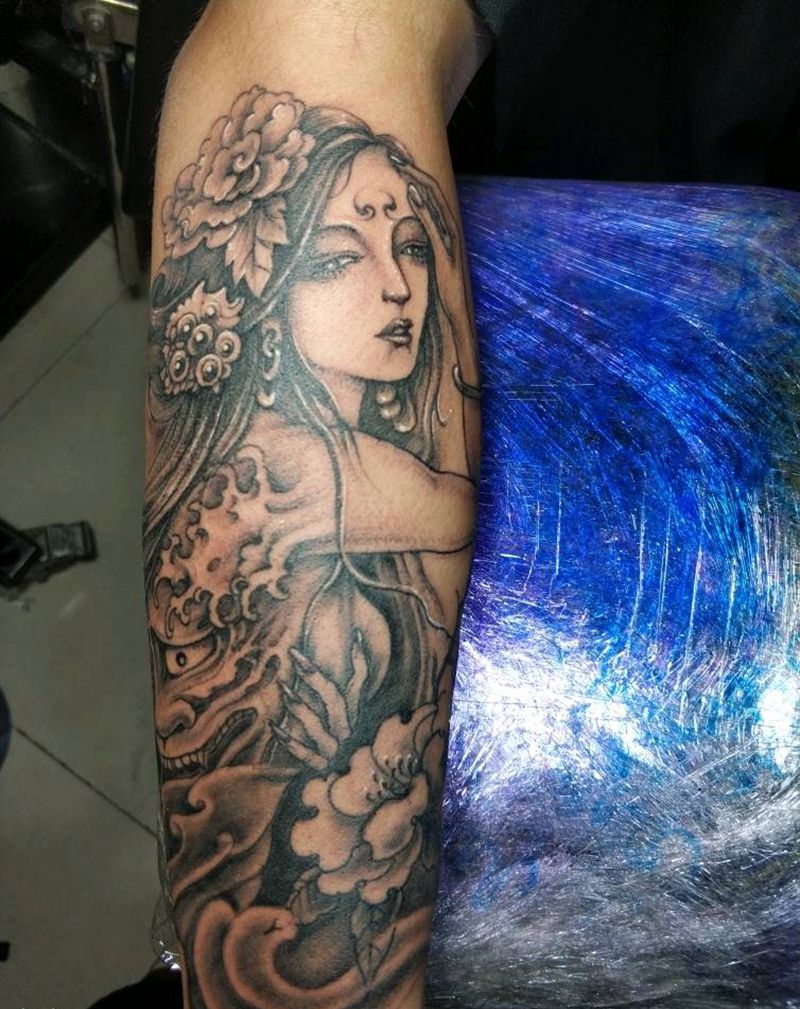当前位置: 首页 >福建省莆田市纹身店-莆田纹艺刺青纹身图案>本店艺妓作品纹身图片_手臂新传统纹身图案